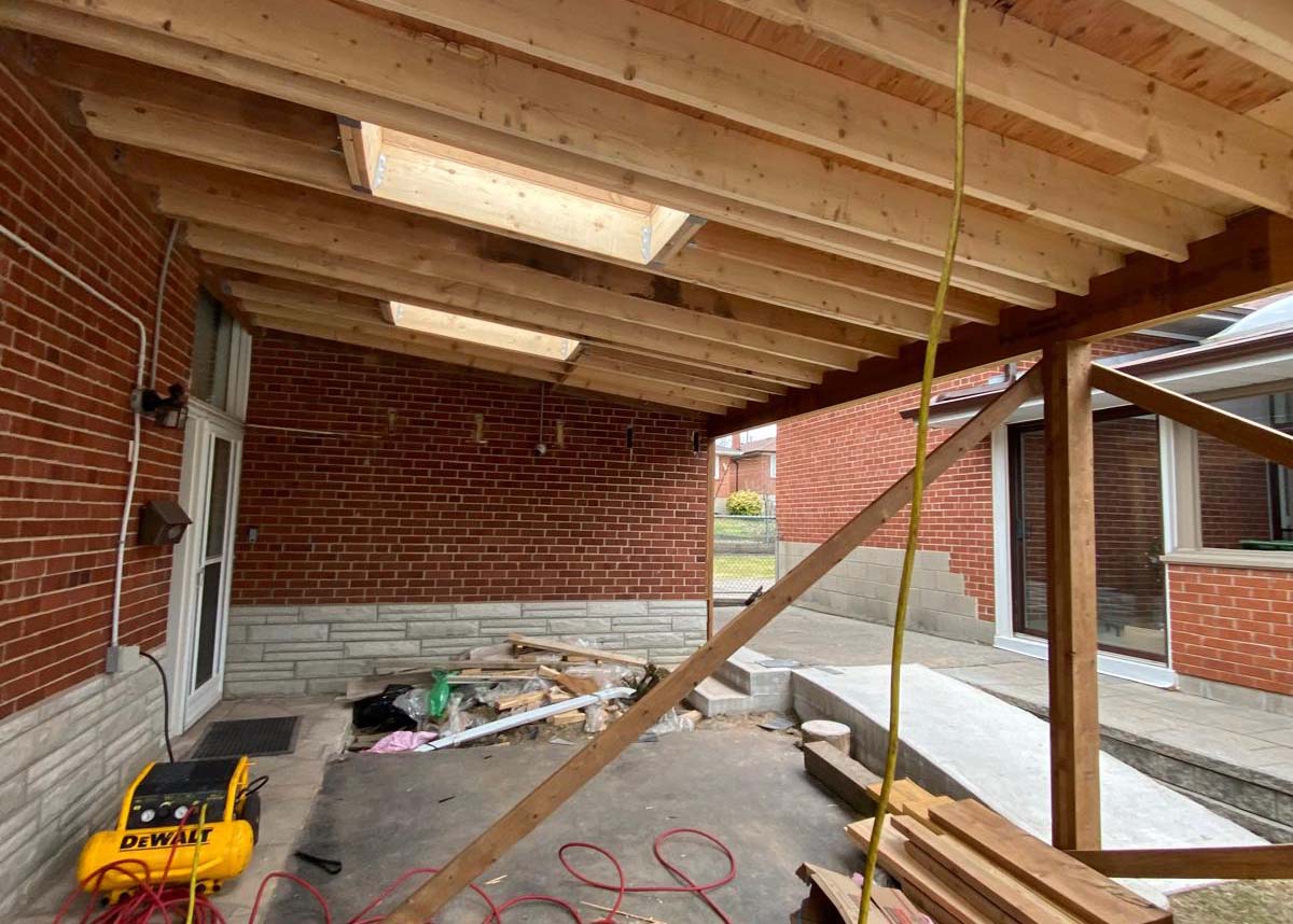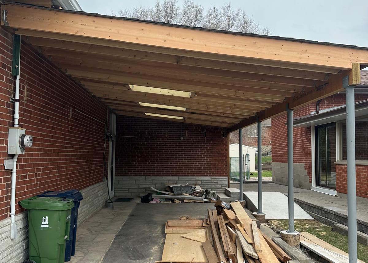 The carport is seamlessly integrated with the house, and with the clean rafter work visible, the structure is now ready for the application of the final roofing materials, electrical finishing, and soffit installation, bringing the project close to completion and providing the homeowner with a valuable, weather-protected area.